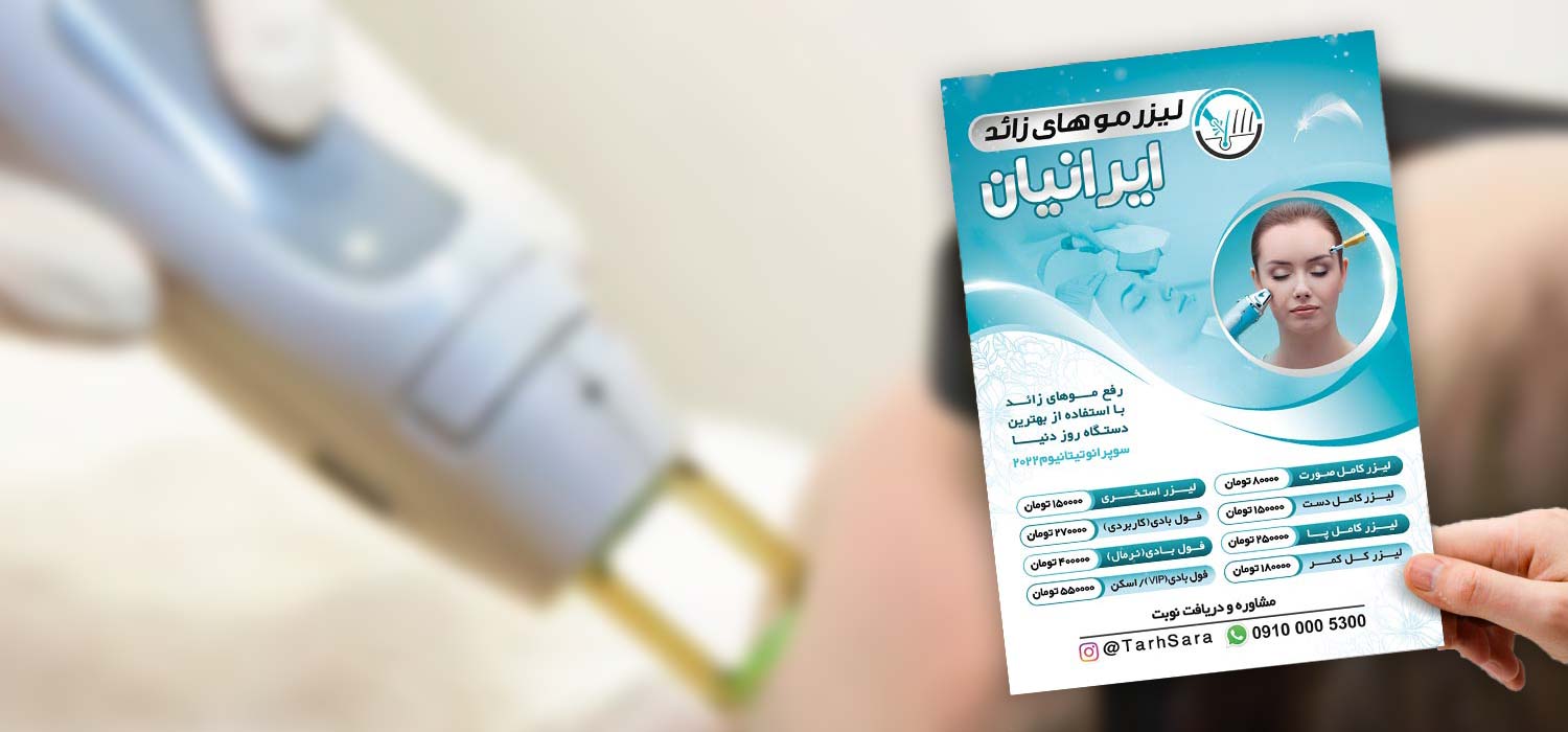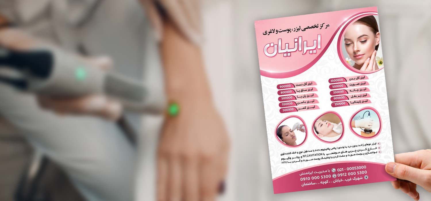 - تمرکز بر پیام اصلی: مخاطب باید در چند ثانیه اول متوجه شود که تراکت درباره خدمات لیزر است.