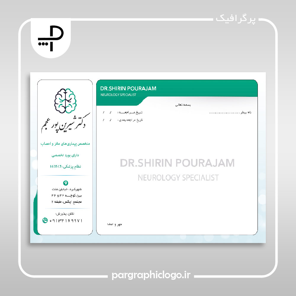 - لوگو و هویت بصری مطب: استفاده از لوگو و رنگهای مشخص مطب باعث حرفهایتر دیده شدن سرنسخه و ماندگاری برند در ذهن بیمار میشود.